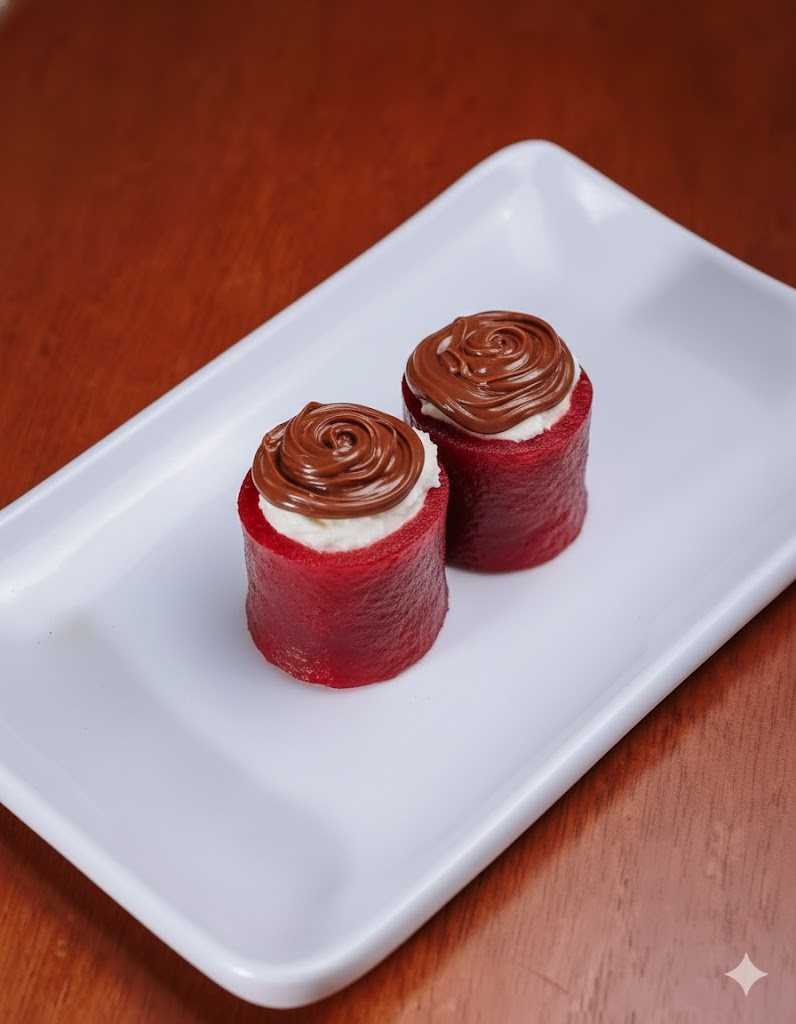 4 peças de lamina de goiabada recheadas com creamcheese coberto com creme de pistache